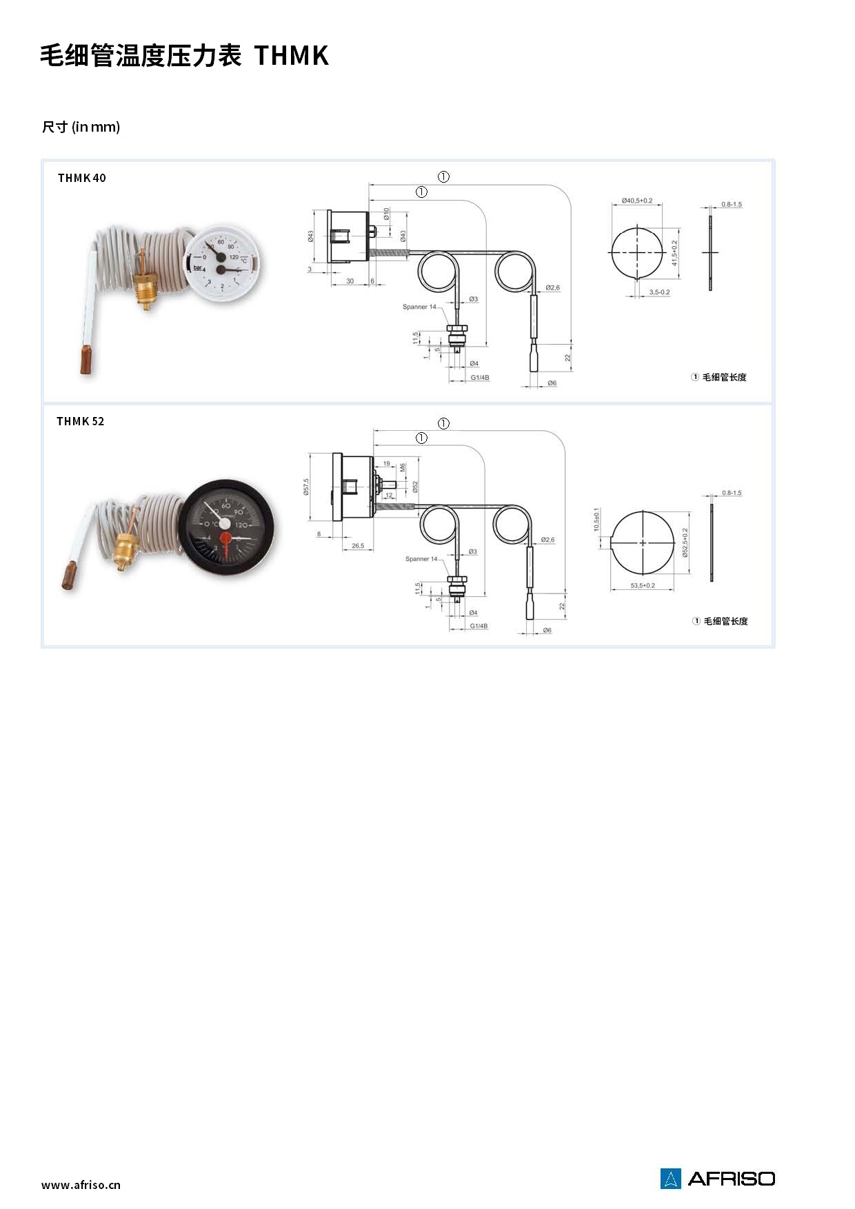 銅毛細(xì)管 壓力:G1/4B 銅接頭 溫包:φ6x30mm 銅 |