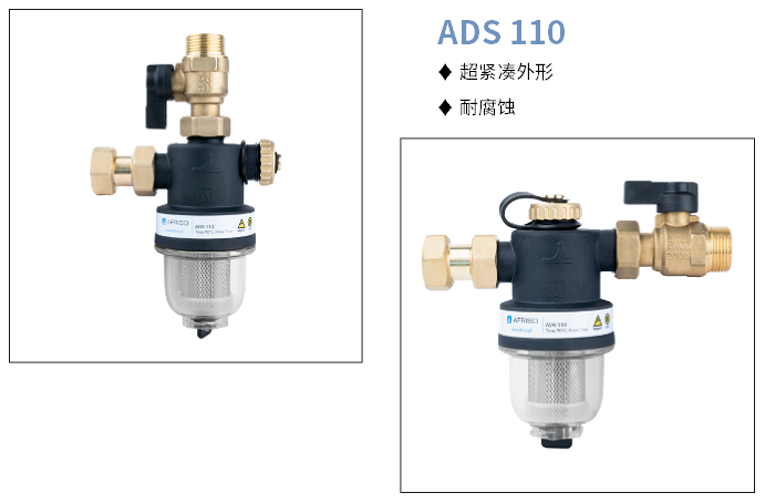 ADS 110磁性過濾器有雙重過濾功能,以磁力過濾和機械過濾原理,將污物有效分離,適用于壁掛爐系統(tǒng)。