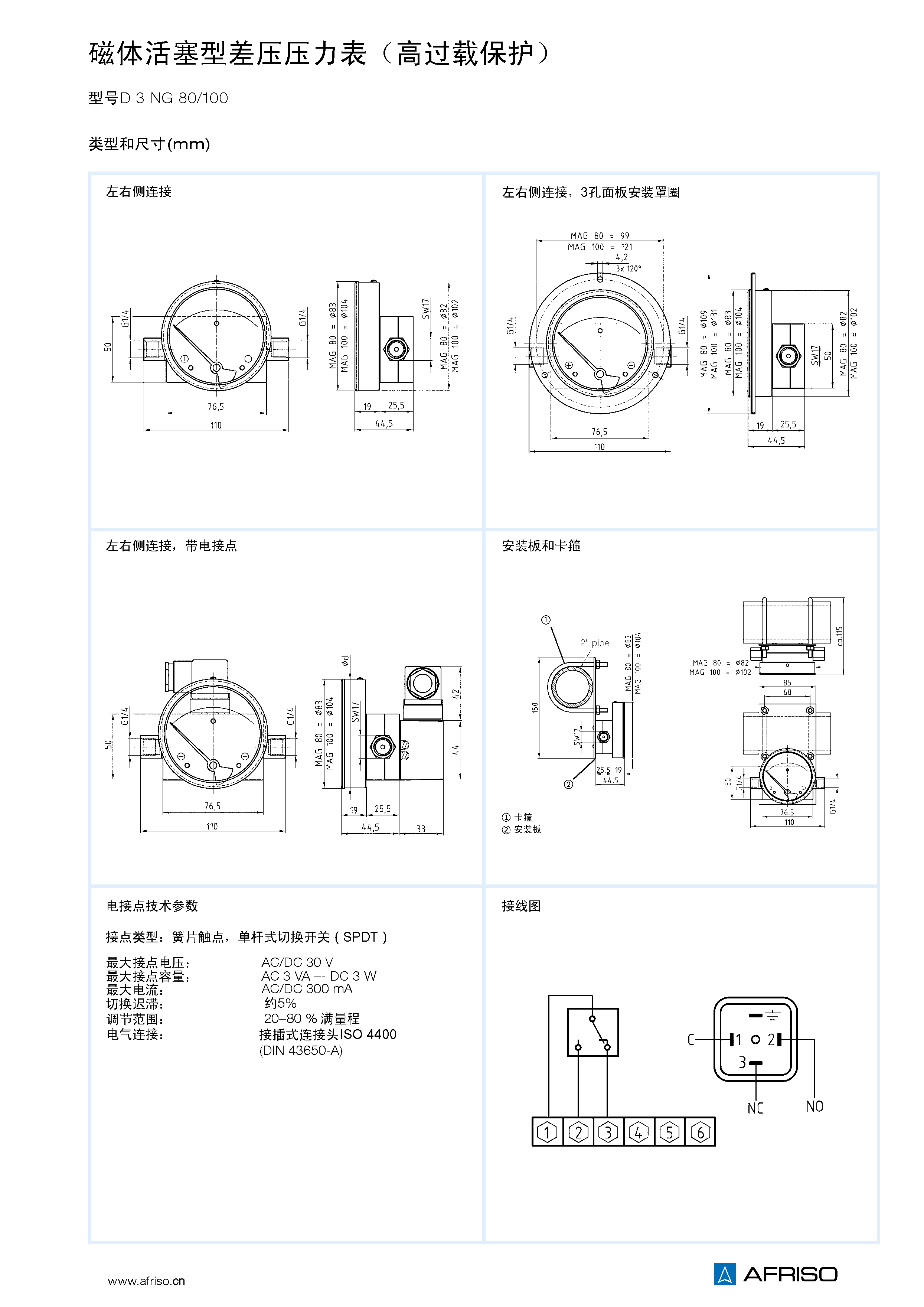 鋁,白色 表牌印刷為黑色/紅色(bar/MPa, psi) 刻度范圍90o |