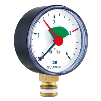 量程:0 / 0.06 - 0 / 1 MPa 儀表玻璃上印有紅色可調(diào)參考指針 |