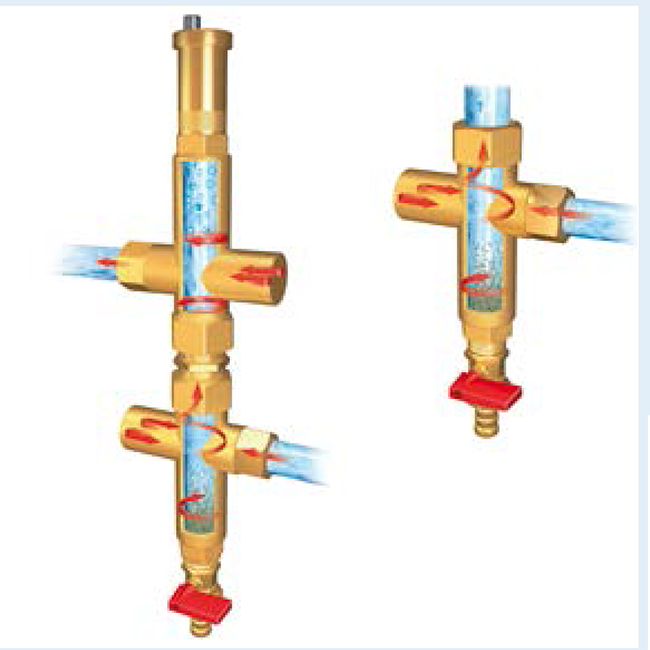 大多數(shù)的供熱系統(tǒng)使用介質(zhì)來(lái)傳熱,介質(zhì)中含有多種雜質(zhì)如石灰,鈣,鎂,氧化物,碳酸鹽以及較大的顆粒,如焊接殘?jiān)?,金屬屑和污垢,這些雜質(zhì)可能會(huì)導(dǎo)致系統(tǒng)出現(xiàn)故障。排氣排污裝置安裝在系統(tǒng)的回路中,從介質(zhì)中去除這些顆粒,雜質(zhì)顆粒沉淀在排污裝置的收集室中,打開(kāi)排污裝置,通過(guò)排掉少量介質(zhì)即可將雜質(zhì)沖洗出來(lái)。潔凈的介質(zhì)在系統(tǒng)中具有更好的熱傳導(dǎo),它們提供更快的加熱,從而有助于減少燃料消耗和排放,減少系統(tǒng)故障,使系統(tǒng)更好運(yùn)?。排氣排污裝置解決系統(tǒng)中因有氣泡引起的問(wèn)題,排氣閥可以自動(dòng)排出氣體。 |