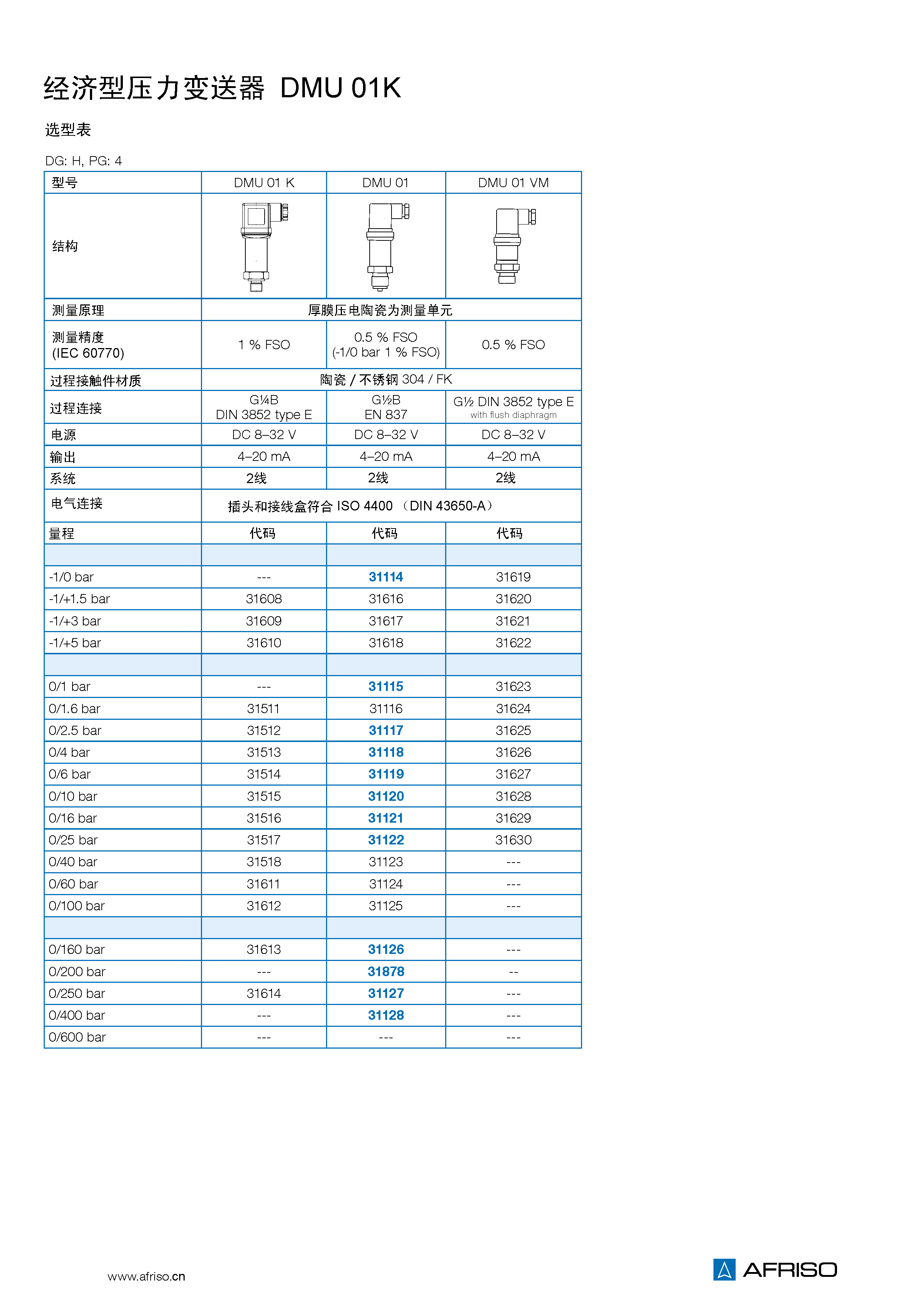 壓力變送器將物理壓力轉(zhuǎn)換成與壓力成正比的電信號。DMU 01K的測量單元是厚膜壓電陶瓷。 |