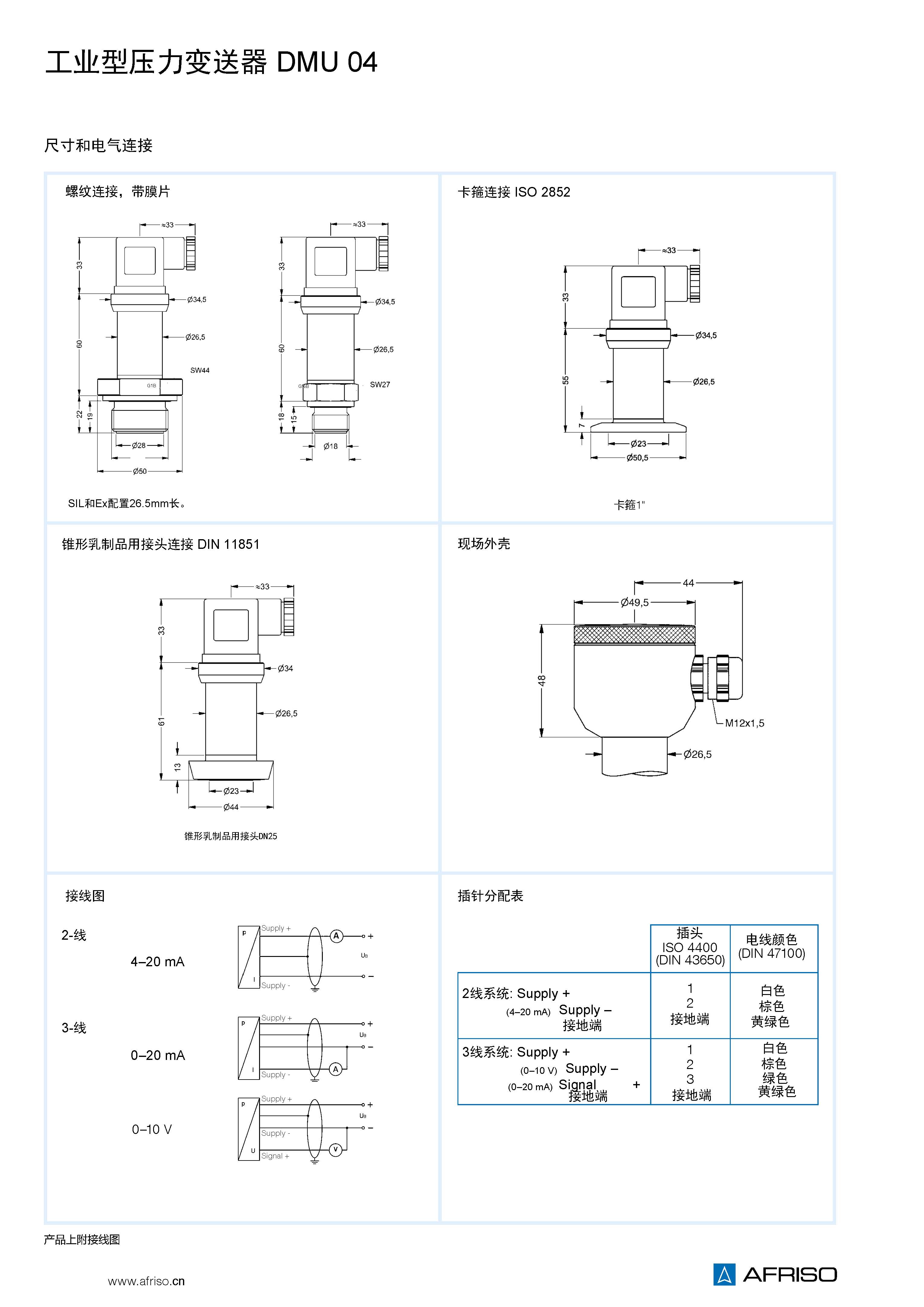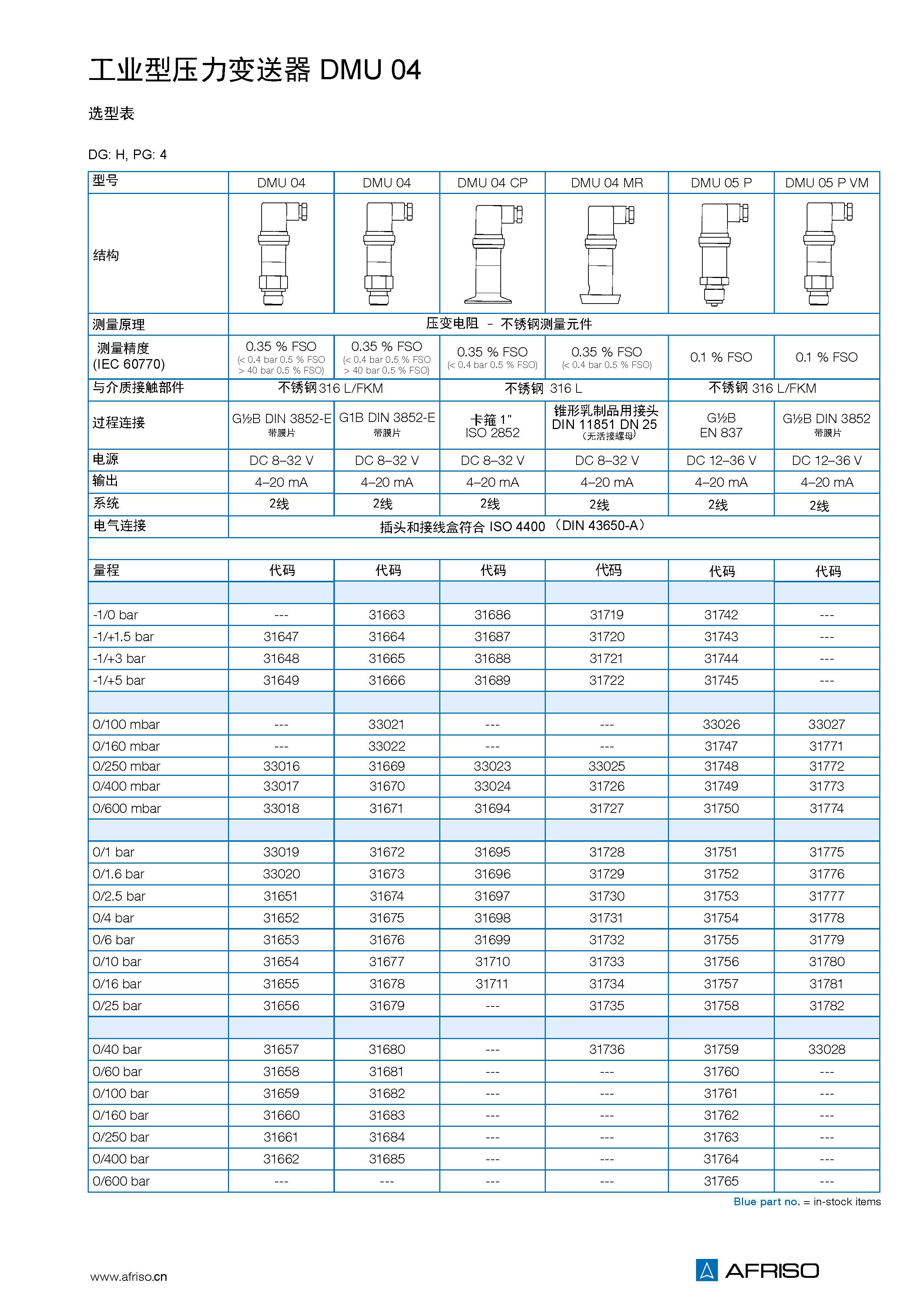 壓力變送器將物理壓力轉(zhuǎn)換成與壓力成正比的電信號(hào)。DMU 04 的測(cè)量單元是充油的壓電硅。DMU 04符合安全完整性等級(jí)SIL 2 (IEC 61508/61511) |