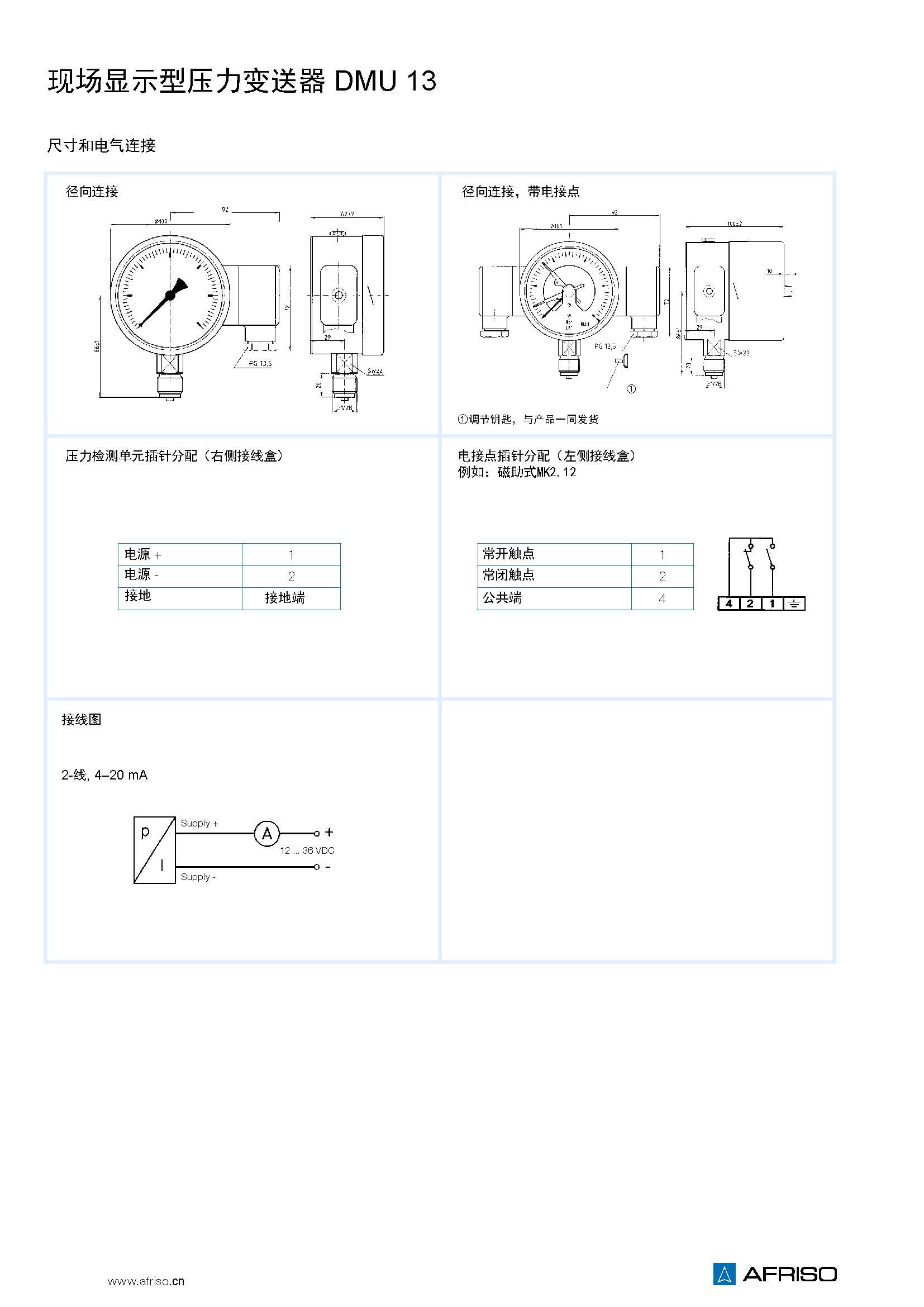 帶無(wú)源現(xiàn)場(chǎng)顯示和電信號(hào)輸出的壓力測(cè)量?jī)x器。 |