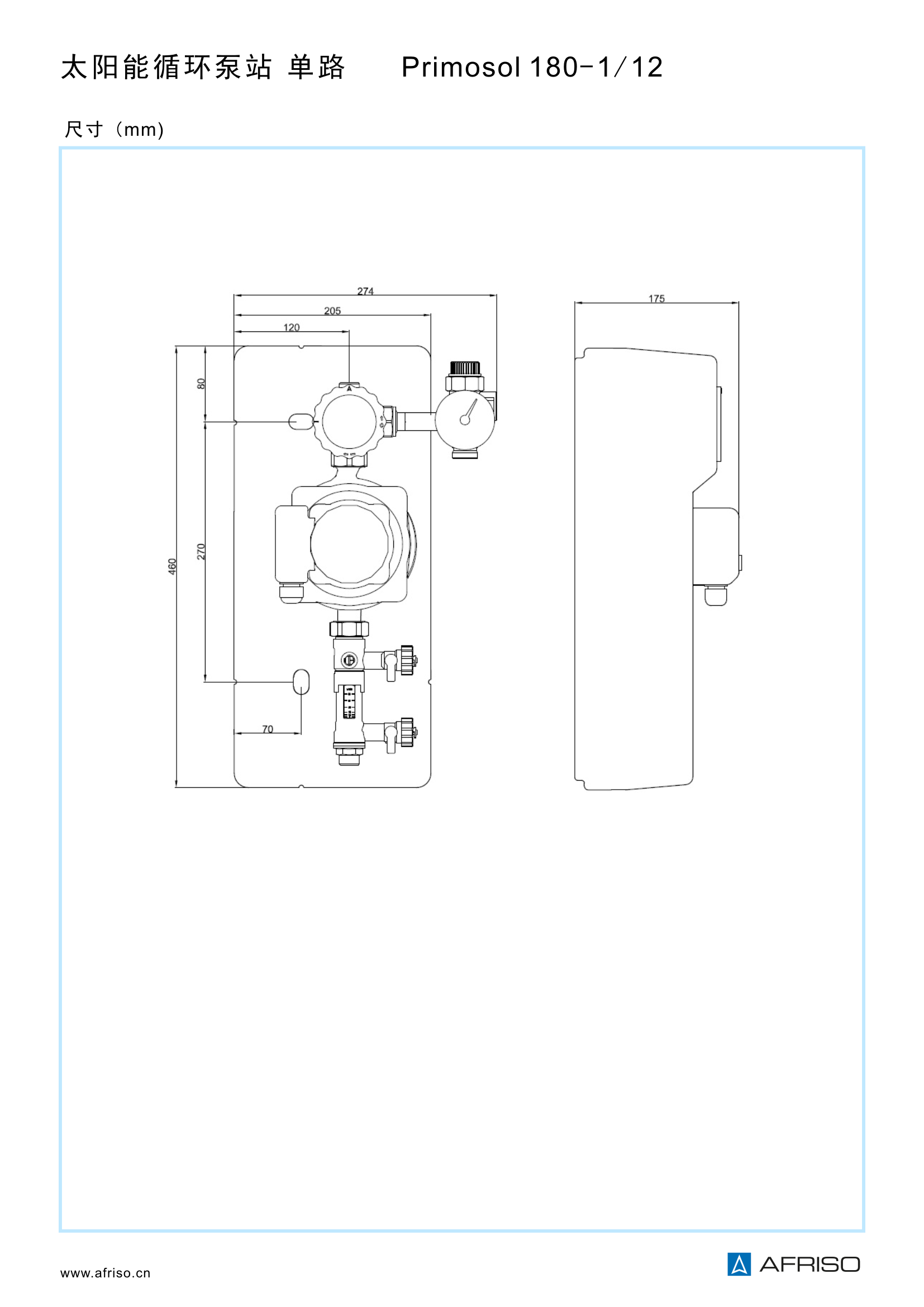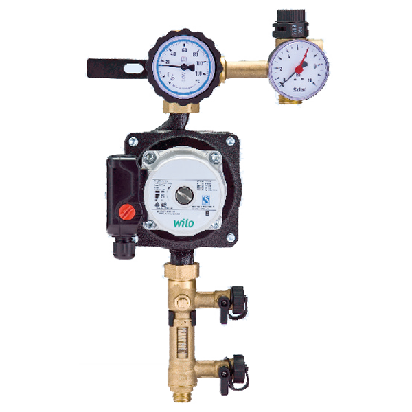 太陽能循環(huán)泵站應(yīng)用于分體承壓閉合循環(huán)的太陽能熱水系統(tǒng),安裝于太陽能集熱器與儲熱水箱之間的供水和回水管路上。 太陽能循環(huán)泵站的作用是根據(jù)控制器的指令來控制熱交換介質(zhì)(水和乙二醇混合液)在閉合管路系統(tǒng)中循環(huán)流動。 |