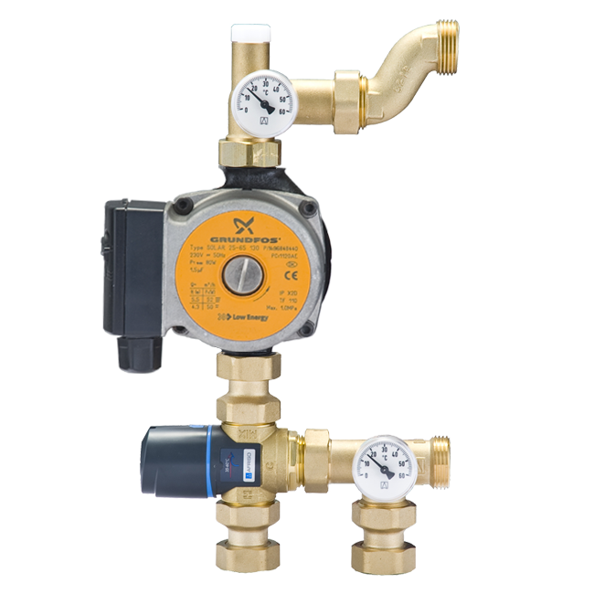 應用 適用于供暖系統(tǒng)中,調(diào)節(jié)分集水器供水側溫度,同時達到節(jié)能的效果。