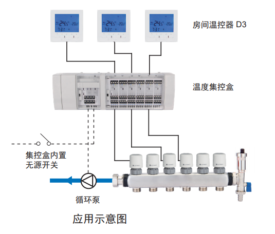 在供熱采暖制冷系統(tǒng)中,與房間溫控器配合使用,用于控制熱源、循環(huán)泵或電熱執(zhí)行器的啟停,達(dá)到舒適控溫的目的,減少能源耗費(fèi)。 |